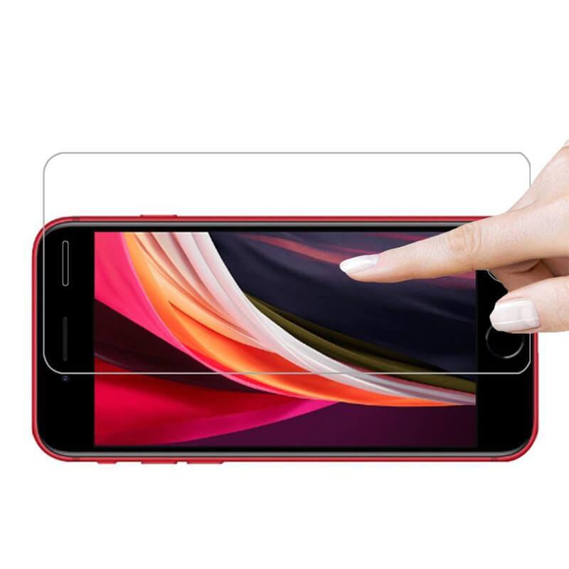 Az edzett üvegből készült üvegfólia tökéletesen védi a mobiltelefon képernyőjét Apple iPhone SE 2020.